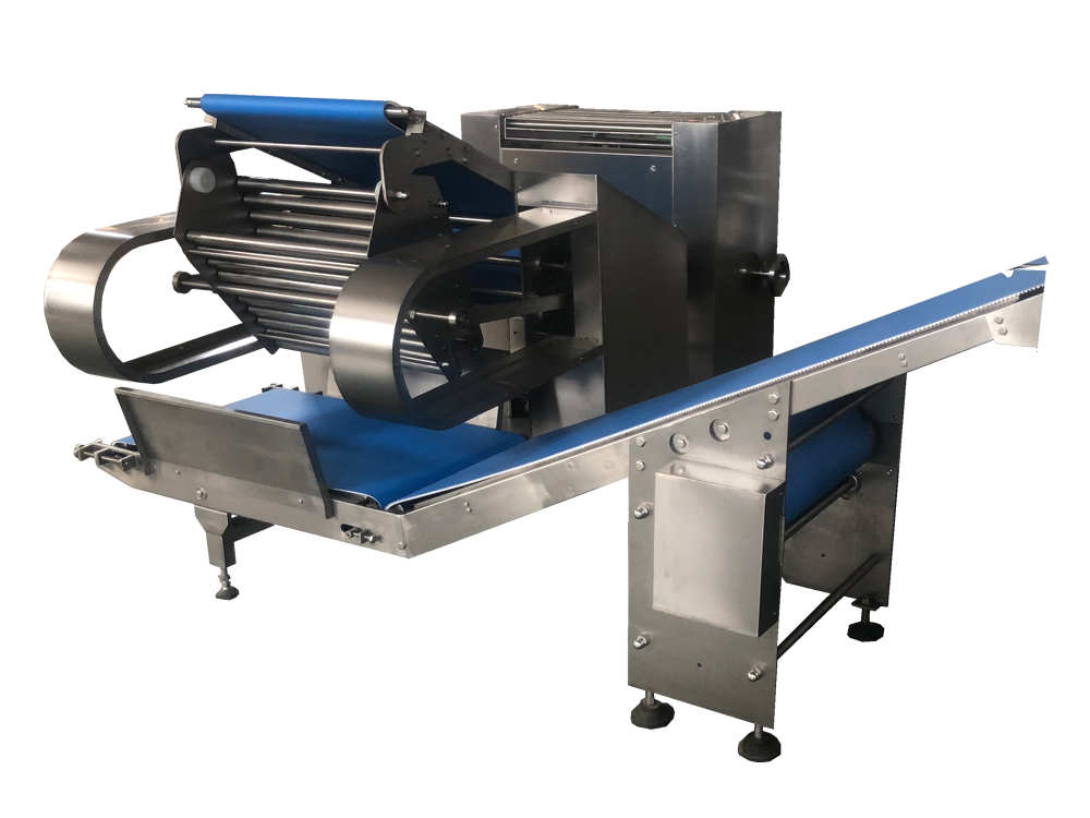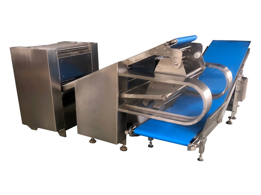 2、疊層機(jī)使面帶Z字型折疊,進(jìn)一步豐富面帶網(wǎng)狀結(jié)構(gòu),提高面筋度,設(shè)備可根據(jù)客戶場地需求選擇不同的擺放形式。